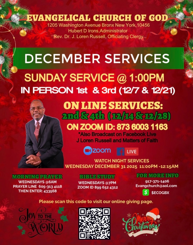 Loren’s spiritual and civic commitment keeps him busy. He is currently providing pastoral leadership to The Evangelical Church of God and continues as an Associate Minister and former Sunday School teacher at his home church, Goodwill Baptist Church. He is the founder of the Back In Stride Ministry, a ministry designed to help ex-offenders to establish their businesses; past President of the John L. Scott Associate Ministers Auxiliary of the United Missionary Baptist Association; founder and Chief Chaplain of the New York State Chaplains Workers Task Force, Inc; President of the 42nd Precinct Community Council, Clergy Liaison, and Moderator for the Ceasefire Initiative all for the New York Police Department; President of the Home/Simpson Street Homeowners Association, Bronx, NY; Board member of Harlem Congregations for Community Improvement (HCCI); 3 times past President of the Yonkers-East Yonkers Rotary Club, NY, and past District Governor for Rotary District 7230.